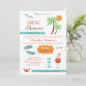 This modern invitation is ideal to celebrate a bridal shower with a beach, ocean or summer theme. The fresh and airy design features a few beach elements such as palm trees, flip flops, sun, shells, a summer cocktail, wavy lines, a seagull and a cute crab character. The colour palette is soft and trendy. This card if perfect for the summer months, a summer wedding or a destination wedding.