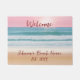 This summer themed custom image welcome mat has a beach sunset photo and customisable family name established date. Perfect for perking up your outdoor home decor for the summer holidays. Customise the text and the photo by editing them in the listing to personalise it. This is a simple but elegant design that you can use to create your own with our template.