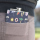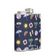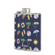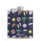 Dark blue holiday themed hip flask with colourful illustrated beach collage.
