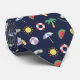 Dark blue casual holiday tie with colourful illustrated beach collage.