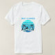 This vibrant summer beach illustration features a tropical scene with palm trees, ocean waves, flying birds, and a bold “Summer” typography design.