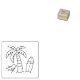 Simple illustration of a palm tree, a surfboard, and a beach chair.