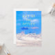 Beach scene illustration with blue skies, sandy shores, and relaxing beach chairs - perfect for retirement party celebrations. Inspired by a Mediterranean beach photo, this painterly design captures the relaxed coastal lifestyle of retirement. Ideal for honoring someone's transition to a life of leisure and beach living. Fully customizable with names, party dates, venue details, and personal text. Great for beach-themed retirement celebrations and seaside party invitations.