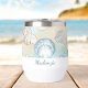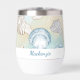 This personalised coastal themed thermal wine tumbler is perfect for a day at the beach, featuring a pattern of hand drawn seashells in shades of blue and brown, with an aqua and sand coloured abstract background. If you would like this design on other products, please contact me through Zazzle Chat.