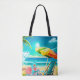 Summer beach umbrellas, surfboard, and tree tote bag