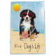 It’s a dog’s life! Be cool and celebrate the dog days of summer with this cute Bernese Mountain Dog wearing sunglasses and relaxing with a drink.