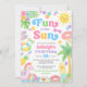 ☀️🌸 Celebrate your little sunshine with this adorable Fun in the Sun Birthday birthday invitation! Featuring bright watercolor artwork — smiling sun, a unicorn pool float, sweet treats, watercolor pool floats, tropical flowers, and sunny vibes — this summer birthday invite is perfect for a fun day in the sun! 🌈🦄