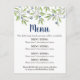 Summer Blueberry Foliage Bridal Shower Menu Insert Invitation in Watercolor Style