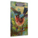 This colourful print illustrates a bluebird resting on a branch in a flower filled forest. This view shows the bird as it is about to take flight. Bright blue, pink, yellow and green colours make an exciting image for decor and personal accessories.