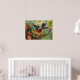 This colourful print illustrates a bluebird resting on a branch in a flower filled forest. This view shows the bird as it is about to take flight. Bright blue, pink, yellow and green colours make an exciting image for decor and personal accessories.