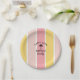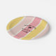 This part plate design has a bright colourful cabana stripes pattern in summer colours of yellow and pink. The text template is ready to personalise with your birthday guest of honour's name. You can also change the age if you want to create these plates for a different age. It's a great choice for parties at the beach, by the pool, or with a summer theme. A single palm tree sketch in the centre of the design adds a touch of the tropics. Plates are available in 2 sizes: shown here in the smaller 7-inch diameter size, they are also available In 9-inch diameter size.