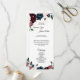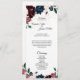This “Summer Celebration” wedding program inspires a traditional and elegant floral atmosphere for a garden wedding. With pink, royal blue, and cabernet burgundy flowers, the rich reds and navy palate combined with gold glitter compliment formal spring, summer and autumn themes, creating a classic and versatile luxury marriage celebration experience.
