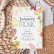 Invite guests for a summer picnic party with these casual chic invitations. Design features your celebration details in modern lettering, surrounded by illustrations of cheeses, meats, bread and fruit. Customise for any type of event, like birthdays, retirements, or housewarming parties.