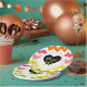 Pretty colourful paper plates, for her Sweet 16 Birthday Party. Pretty orange, pink, yellow green and white chevron pattern, with a black heart.