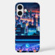 A modern anime-style summer city with neon lights and a glowing sunset sky. Perfect for fans of urban landscapes and summer nights.