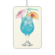 Blue summer cocktail with straw, orange slice, cherry, and paper umbrella.