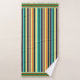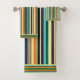 Fun Summer Colour Stripes orange, teal, yellow, tan, green, with alternate striped strip at top and bottom. A great way to add a spring/summer look to your home, cottage, camper and more. We have a great variety of summer coloured decor, tropical florals, leaf themed decor, in a variety of products at Cabana Tropics Decor.