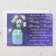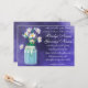 White daisies in a blue tinted mason jar.