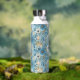 The bottle looks even better in real life. The ice cubes I put in lasts all day! I have my bottle with me all the time. It's summer and having something cold to drink feels amazing. With this bottle I always have something super cold. I have only tried the hot drink once and it lasted a long time as well. The color blue is a navy blue and the white printed on it is vibrant. It printed perfectly. I love my personalized smile water bottle.