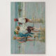 This design features a painting by the American Impressionist painter Edward Henry Potthast (1857–1927). It shows children standing on the beach at Brighton Beach in New York City. They are paddling in the water, wettening their feet as the waves lap against them.