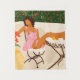 A relaxed figure in a pink dress lounges on a sunlit patio, surrounded by lush greenery and vibrant blooms. This artwork captures the warmth and tranquillity of a Mediterranean summer afternoon.