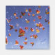 A stream of jewel-bright butterflies whirling through the blue summer sky amid a cloud of dandelion seeds, with a pair of dragonflies buzzing alongside.