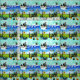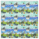 A repeat design of A sky blue seafoam green grasses and white fluffy clouds with a happy sweet Halloween invite atmosphere