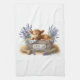 This kitchen towel is shown in a cute summer farm baby cow art print.