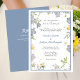 Summer Flowers Blue Wedding with RSVP Invitation designed with petite flowers in soft shades of blue and white, with yellow. The front side text includes: The Bride's Parents Names and The Groom's Parents Names, Request The Pleasure of Your Company At The Marriage of Their Children, The Bride and Groom's Full Names, Wedding Date, Time, Location and Reception Notes. The reverse side text includes: RSVP, Kindly Reply By Date, and Your RSVP Details on a soft blue background. To personalise, simply insert your wedding details into our easy template, replacing the sample text. Be sure to view the entire Summer Flowers Blue Wedding Collection for matching cards and Reception Stationery.