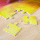 My daughter is getting married, and I had seen a cute idea where guests write words of wisdom/well wishes on the back of oversized puzzle pieces. This was perfect! Large pieces and a photo that reflected the couple's favorite place to travel! The individual pieces were vibrant and clear. The white backing took Sharpie markers well and didn't bleed through.