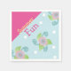 Blue and pink floral paper napkins for summer. Personalise for your event.