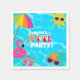 Dive into fun with these cute pool party paper napkins! Perfect for kids and adaptable for any age, these vibrant napkins set the scene for a splash-tastic celebration. They feature a turquoise pool water background dotted with playful icons like a beach umbrella, a pink flamingo float, flip flops, and more, all under the watchful eye of a whimsical sun. The napkins feature text that reads: "POOL PARTY" — the 'O’s playfully replaced with beach balls— with the ability to customise them by adding a personalised name above the text. Personalising is a breeze; just click “Personalise this Template” to make them your own. Get ready to make waves with these delightful paper napkins plates!