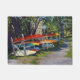 Summer Fun kayaks in colourful red, yellow, and blue stacked along a trail in Rockport, Maine. Illustration from an original impressionistic oil painting by Daniel Fishback.