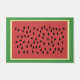 This custom welcome door mat for your house will bring in some juicy summer fun. It looks like a rectangle with red watermelon flesh, black seeds, and green rind.