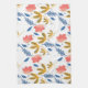 Summer Garden Blue Yellow Coral Florals Tea Towel