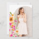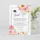 This charming graduation thank you card features soft watercolor florals in warm peach, pink, and coral tones, accented by a modern script and gold geometric frame. The front includes space for a heartfelt message, while the back displays a joyful photo of the graduate, framed by whimsical wildflowers. A sweet and feminine way to express gratitude for support and love during this milestone. Ideal for spring or summer celebrations, this design adds a thoughtful finishing touch to any grad party.