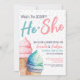 He or She, what's the scoop aka 'flavour'? A cute pink and blue gender reveal party theme perfect for the summer. So whether the couple is having a boy or girl, help them celebrate their new baby with this sweet ice cream fun. Featuring pink and blue ice cream cones, colourful sprinkles in the background, and a mix of modern and script typography for a fun and playful vibe. He or She Pink And Blue Ice Cream Sprinkles What's The Scoop Gender Reveal Theme Party Invitation