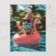 Summer Gnome in Sunglasses on Flamingo Float Postcard