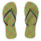A cool summer green and orange kaleidoscope design brightens these fun flip flops.