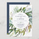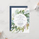 This summer greenery all in one wedding invitation is perfect for an elegant midsummer wedding. The botanical design features a lush arrangement of painted watercolor eucalyptus, greenery, and green leaves with subtle sprigs of blush pink blossoms. Save paper by including the details on the back of the wedding invitation instead of on a separate enclosure card. Include the RSVP info as well if your guest will be replying electronically (optional).