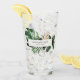 Wedding glasses features tropical greenery and gold foliage. Perfect look for summer and modern eco weddings or gift for newly weds.