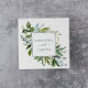 These summer greenery wedding paper napkins are perfect for an elegant midsummer wedding reception. The botanical design features a lush arrangement of painted watercolor eucalyptus, greenery, and green leaves with subtle sprigs of blush pink blossoms. Personalise the napkins with the names of the bride and groom. These napkins can be used for the wedding reception, rehearsal dinner, engagement party and more!
