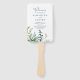 This summer greenery wedding program fan is perfect for an elegant midsummer wedding. The botanical design features a lush arrangement of painted watercolor eucalyptus, greenery, and green leaves with subtle sprigs of blush pink blossoms. Include the name of the bride and groom, the wedding date and location, thank you message, order of service, and bridal party. Order your programs assembled or non-assembled.