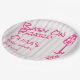 As you see this unique and elegant summer baby on board baby shower paper plate has a well designed template. With pink hand drawn lemon and cocktail glass and hand written name and date in vivid pink. And watercolor light blush pink stripes background . Which you can customise easily by clocking on the personalise button.