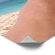 Poster print of women's feet with pink red nail polish on a white beach on an island in the mediterranean sea relaxing during the summer holidays.