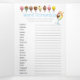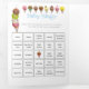 A cute and colourful ice cream illustration design with bright scoops of ice cream in sugar cones scattered around the edge of the invite and rainbow confetti forming a border around your beautiful Childs photo. The outside flap thanks your guests for joining you and the inside has three fun games to play - baby bingo, word scramble and let's play firsts