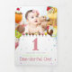 A cute and colourful ice cream illustration design with bright scoops of ice cream in sugar cones scattered around the edge of the invite and rainbow confetti forming a border around your beautiful Childs photo. The outside flap thanks your guests for joining you and the inside has three fun games to play - baby bingo, word scramble and let's play firsts