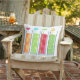 The picture doesn’t show the design but this pillow is adorable. The colors are bright and fresh, the fabric is great for indoor/outdoor use. Beautiful colors and picture of flip flops. Font is great.