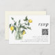 These stunning wedding rsvp response cards feature lush, watercolor lemon greenery arrangement in a jar, yellow and green colours. An elegant summer lemons floral look on a simple white background, with swirly modern typography. The combination rsvp card features a QR code on the front, as well as a traditional rsvp card on the back for guests who prefer to return their cards by mail.