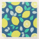 Summer Lemon Pattern in Navy Blue Glass Coaster